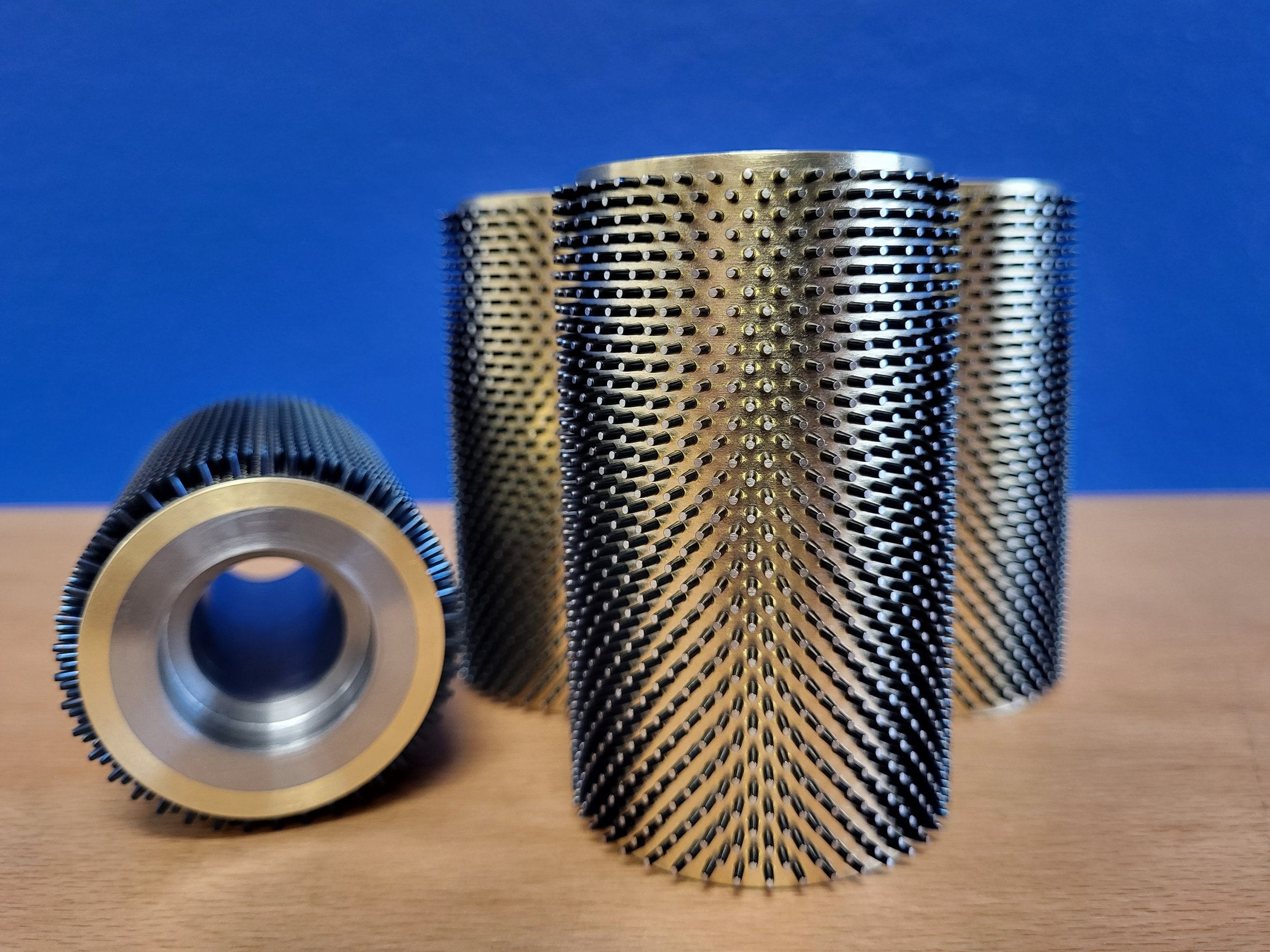 Custom Tooling: Interchangeable cylinders for different technical textures.